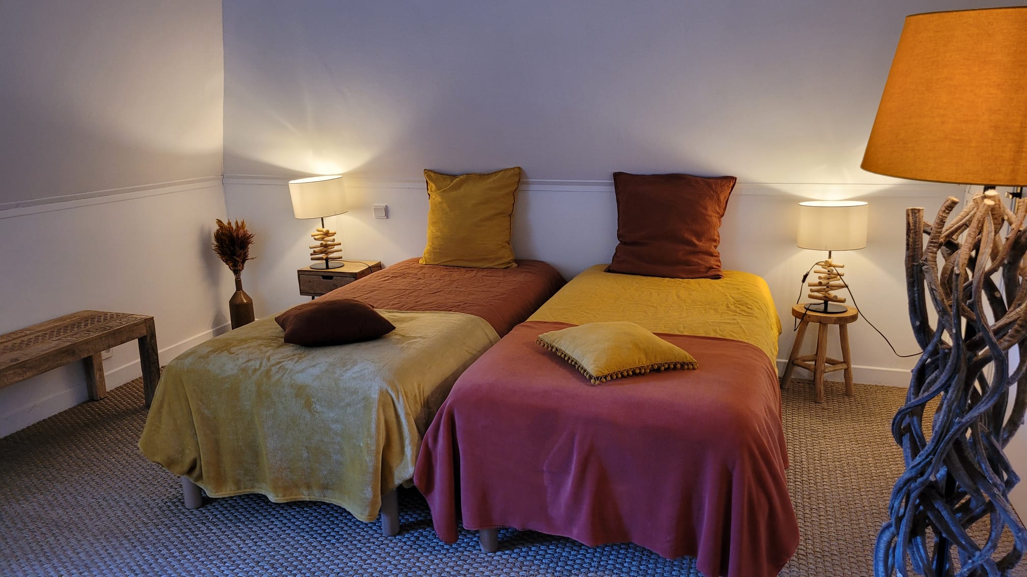 La première, pour deux personnes, avec des lits jumeaux, la deuxième, pour trois personnes, composée d’un lit king-size en 180cm et un lit une personne.